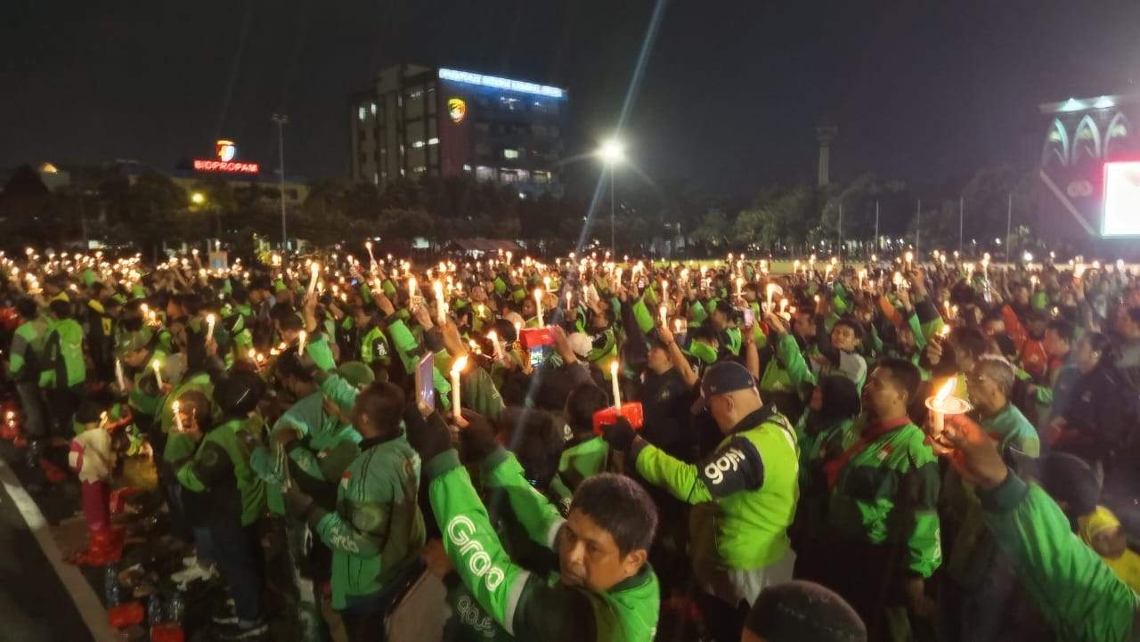 Aksi 1000 Lilin, Ribuan Driver Ojol Geruduk Mapolda Jatim