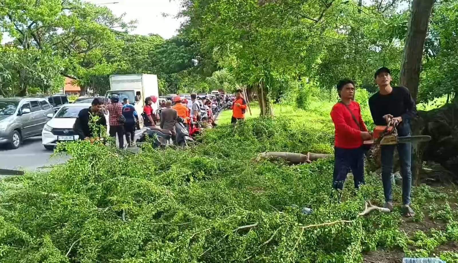 Proses pembersihan dan pemotongan bagian pohon yang menutupi jalan selesai dilakukan pada pukul 17.15 WIB. Sejak saat itu, arus lalu lintas di Jalan Insinyur Soekarno kembali berjalan normal seperti biasanya.(Kdm)