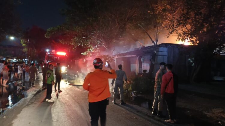 “Api diduga berasal dari kios bengkel, kemudian membesar dan merembet ke kios di sampingnya,” berdasarkan keterangan awal di lokasi kejadian.