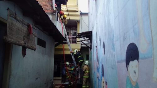 Dinas Pemadam Kebakaran dan Penyelamatan surabaya/” title=”Kota Surabaya”>Kota Surabaya menerima laporan kebakaran sekitar pukul 02.29 WIB dari warga. Enam unit pemadam dikerahkan dan tiba di lokasi lima menit kemudian. Petugas langsung melakukan pemadaman untuk mencegah api meluas ke bangunan lain.