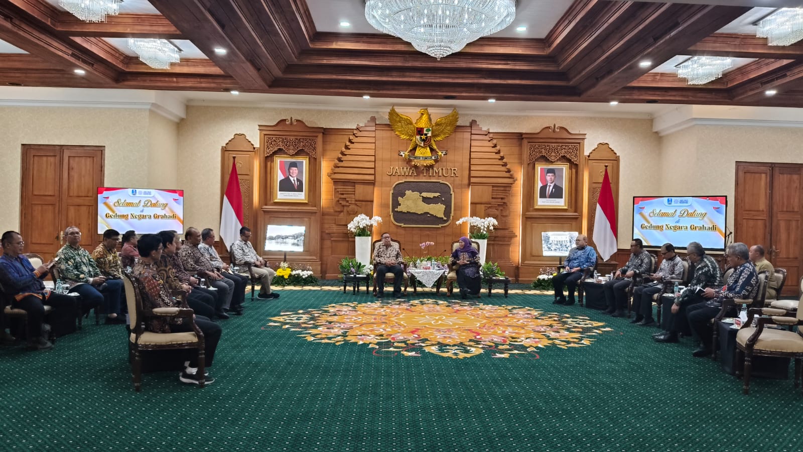 infosurabaya.com | SURABAYA – Direktorat Jenderal Pajak (DJP) Jawa Timur melakukan kunjungan silaturahmi dan koordinasi dengan Gubernur Jawa Timur, Khofifah Indar Parawansa, di Gedung Negara Grahadi, Surabaya, Senin malam (15/12/2025). Pertemuan yang berlangsung pukul 23.00–23.50 WIB tersebut membahas penguatan kerja sama perpajakan antara pemerintah pusat dan daerah, mulai dari optimalisasi pajak daerah, pengelolaan Dana Desa, hingga dukungan bagi koperasi dan UMKM di Jawa Timur.