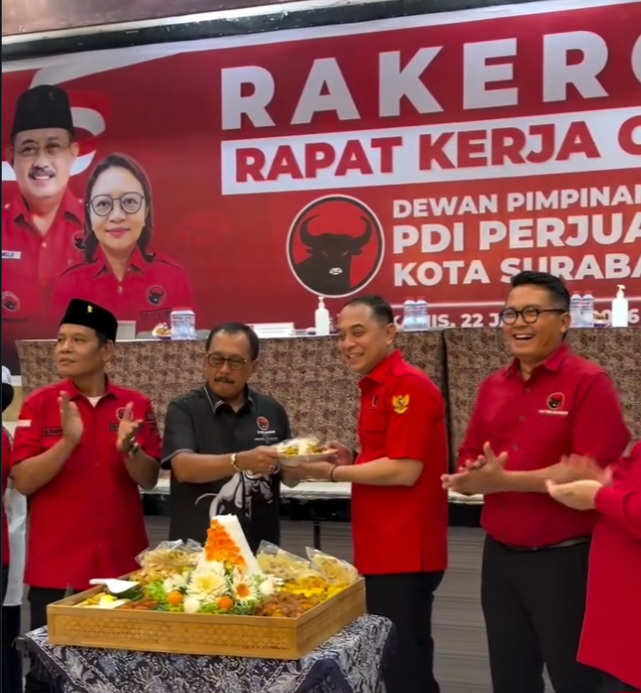Acara tersebut dihadiri jajaran DPD PDI Perjuangan Jawa Timur, Wali surabaya/” title=”Kota Surabaya”>Kota Surabaya Eri Cahyadi, Yordan Batara Goa,Didik Prasetyo ( Didong) serta seluruh jajaran pengurus, kader, dan simpatisan PDI Perjuangan Surabaya.
