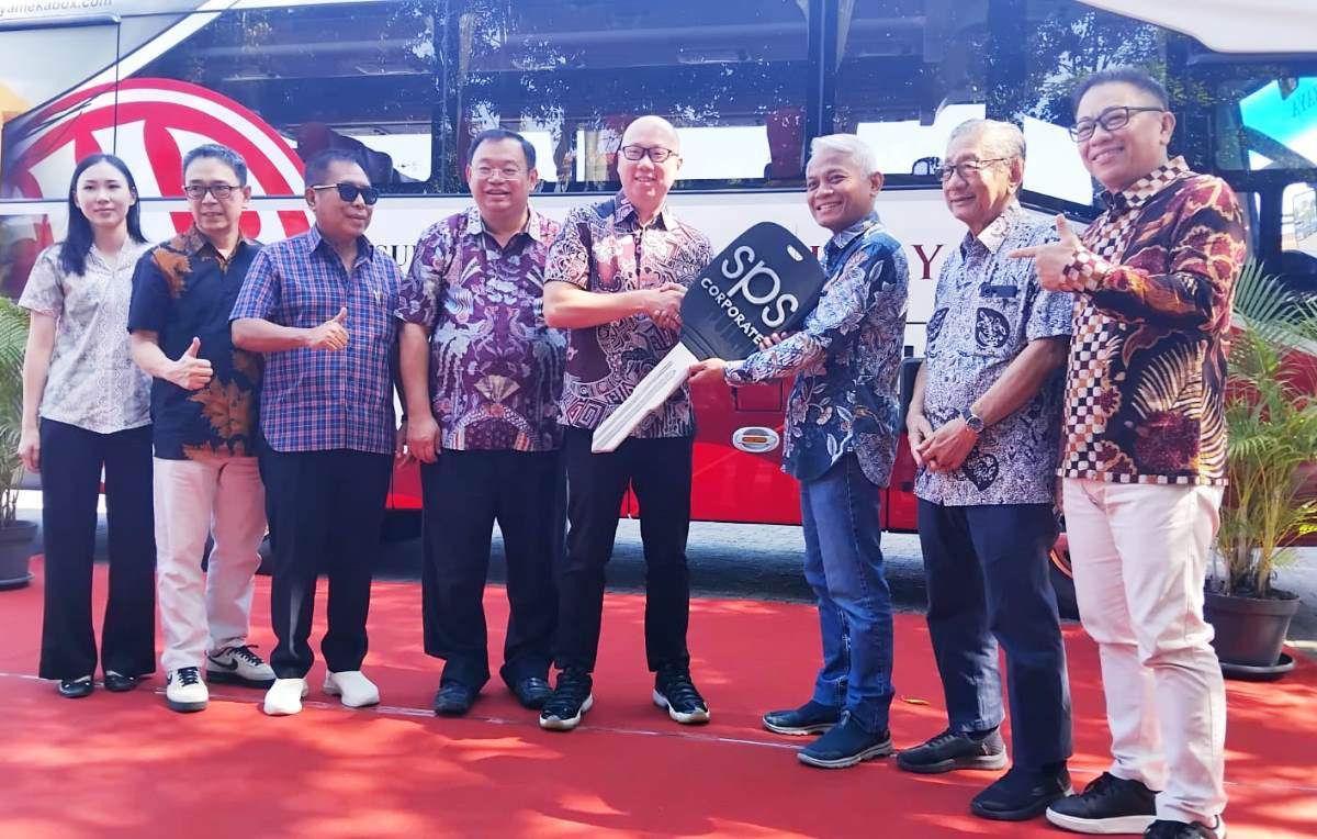 Sebagai wujud kemitraan strategis Ubaya dengan SPS Corporate dan SMB Group, ditandai dengan penyerahan bantuan sarana transportasi, satu unit bus operasional di halaman perpustakaan kampus Ubaya, Rabu (30/7/2025).