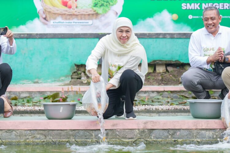 Infosurabaya.com – Jawa Timur“>Gubernur Jawa Timur Khofifah Indar Parawansa memimpin langsung gerakan penanaman tanaman produktif, penaburan benih ikan, dan panen serentak bersama 110.481 guru serta siswa SMA, SMK, dan SLB se-Jawa Timur. Kegiatan yang dipusatkan di SMKN 1 Plosoklaten, Kabupaten Kediri, Minggu (25/1), itu mengantarkan Pemprov Jatim meraih dua rekor Museum Rekor-Dunia Indonesia (MURI).