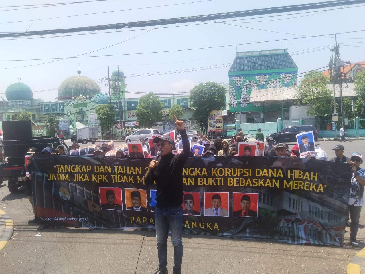 Koordinator Lapangan Jaka Jatim, Musfiq, dalam orasinya menyampaikan kekecewaan atas lambatnya penanganan kasus ini. Menurutnya, meskipun KPK telah menetapkan tersangka selama 15 bulan, para terduga pelaku masih bebas berkeliaran, bahkan beberapa di antaranya masih menjabat sebagai anggota dewan dan menerima gaji serta tunjangan dari negara.