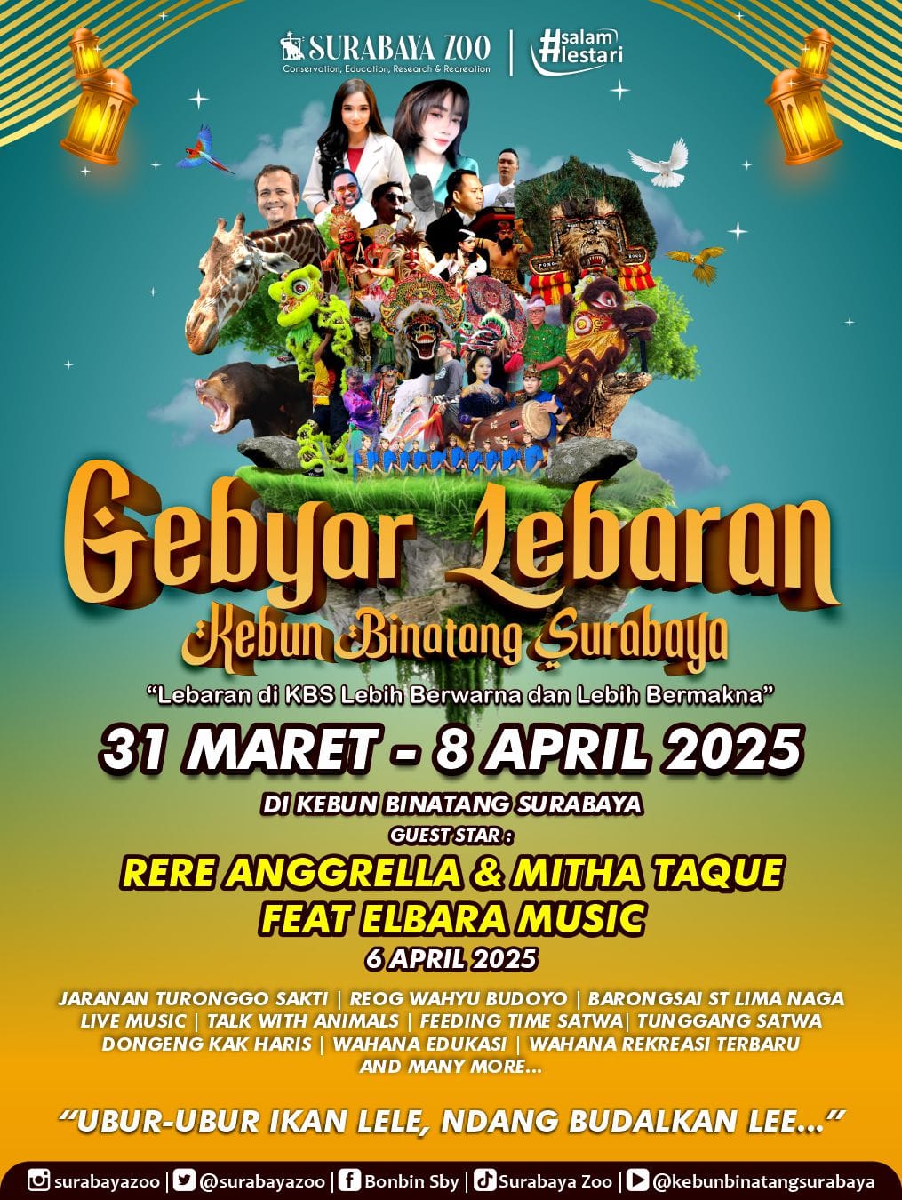 Rangkaian acara yang disiapkan diantaranya Jaranan Turonggo Sakti pada tanggal 1 April 2025, Reog Wahyu Budoyo pada tanggal 5 April 2025 dan atraksi Barongsai ST Lima Naga pada tanggal 7 April 2025. Sebagai puncak acara pengunjung akan dihibur dengan penampilan bintang tamu Rere Angrella dan Mitha Taque Feat Elbara Music yang akan tampil pada Sabtu 6 April 2025. Kemeriahan acara ini bisa dinikmati di panggung besar depan wahana rumah jamur. Selain mempersiapkan hiburan, yang tak kalah menarik, untuk mengajak pengunjung mengenal satwa lebih dekat lewat melalui program ‘Talk With Us’ yang digelar setiap hari selama musim libur lebaran mulai pukul 10.00 WIB.