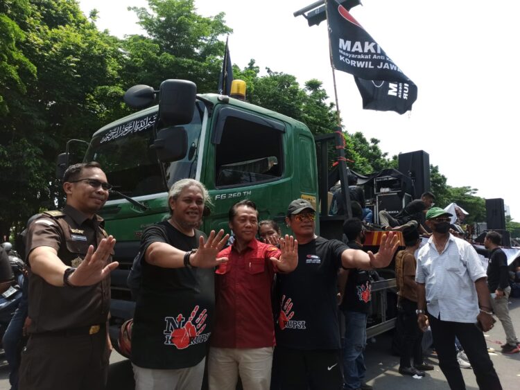 Masyarakat korupsi/” title=”Anti Korupsi”>Anti Korupsi Indonesia (MAKI) melakukan aksi damai di depan Kejati Jatim untuk menyampaikan dukungan terhadap upaya pemberantasan korupsi yang dilakukan jaksa, terutama di Bidang Tindak Pidana Khusus (Pidsus). (Foto: Istimewa/BS))