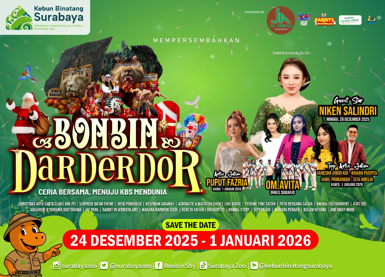 Program ini berlangsung mulai tanggal 1 Desember 2025 hingga 1 Januari 2026, menghadirkan rangkaian aktivitas edukatif, atraksi satwa, serta hiburan budaya untuk seluruh keluarga. Sementara itu, harga tiket tetap Rp15.000 pada 24 Desember 2025 – 1 Januari 2026, sebagai komitmen KBS untuk menyediakan rekreasi ramah keluarga.