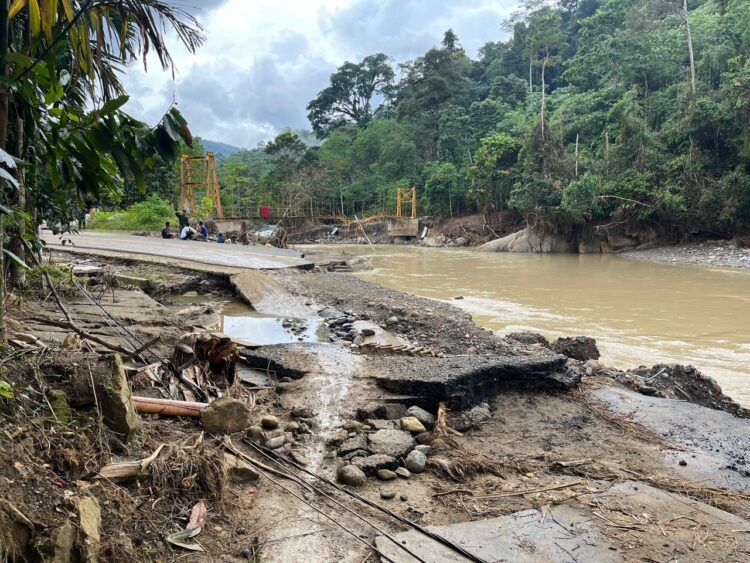 Kondisi jalan dan jembatan setelah bencana banjir dan longsor yang terjadi di Desa Pameu, Aceh. (Foto: Humas ITS/bs)