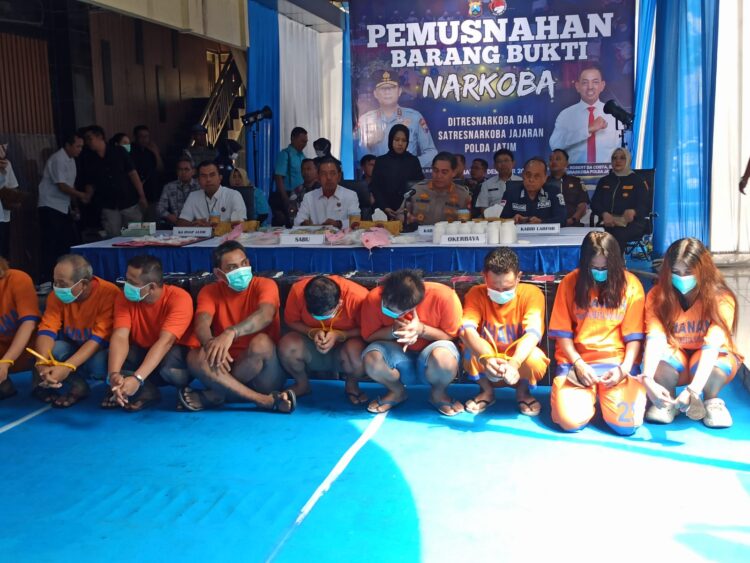 Kepala Bidang Humas Polda Jatim Kombes Pol. Jules Abraham Abast mengatakan, barang bukti yang dimusnahkan berasal dari 24 kasus narkotika dengan total 40 tersangka yang telah diproses hukum.