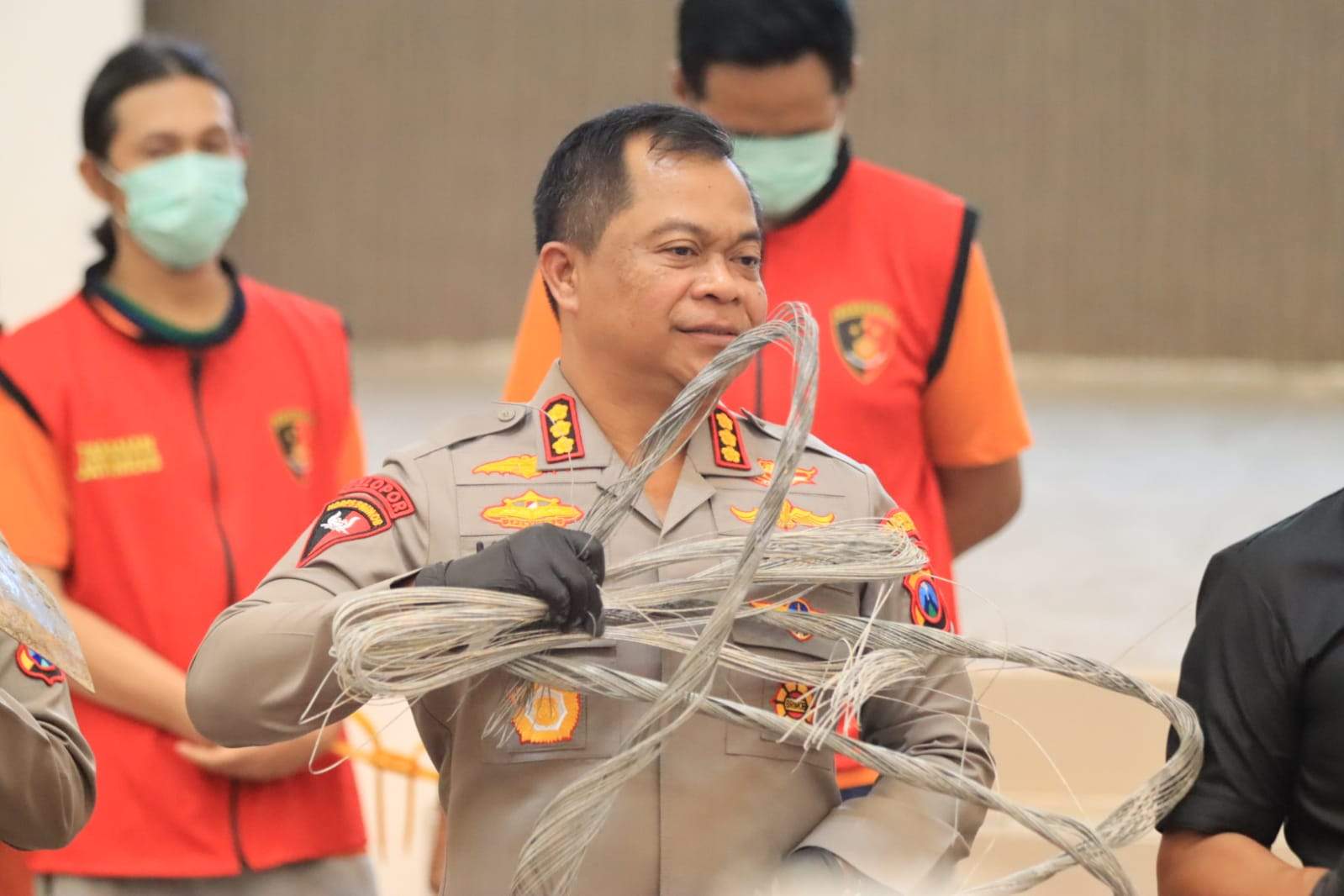 “Keduanya masuk ke gorong-gorong dengan membuka penutup secara manual, menyusuri jalur kabel PJU dan Telkom, lalu memotongnya menggunakan gergaji besi, tang pemotong, dan menarik ke permukaan dengan katrol,” jelas Kapolrestabes Surabaya Kombes Pol Luthfi Sulistiawan. Kamis (4/12/2025).