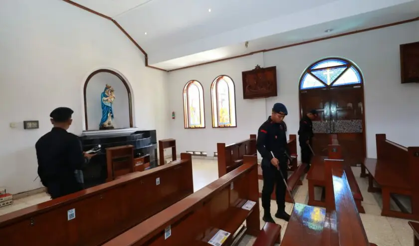 Dalam proses sterilisasi, petugas menggunakan alat pendeteksi logam dan melakukan penyisiran menyeluruh. Pemeriksaan dilakukan mulai dari area altar, bangku jemaat, ruang pendukung, hingga halaman dan lingkungan sekitar gereja.