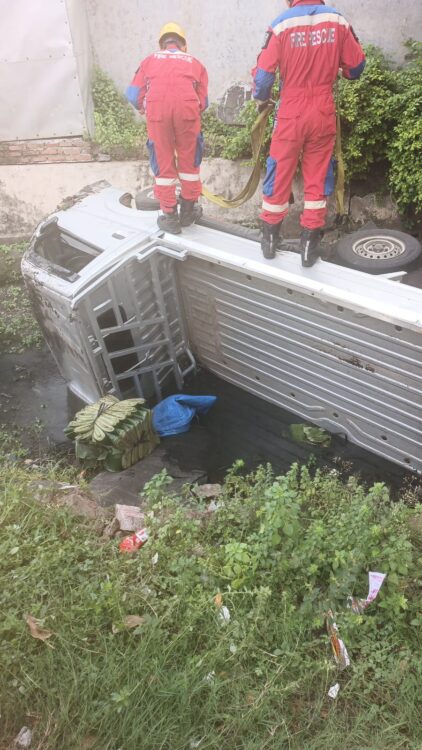 Tim Rescue berhasil mengevakuasi yang nyungsep ke selokan di Kedung Tarukan. (Foto: CC112)