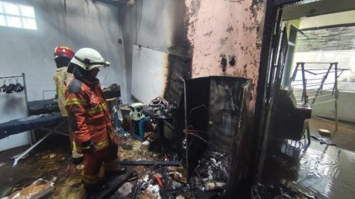 Petugas berhasil memadamkan api yang diduga dari konsleting lemari pendingin. (Foto: Dok Command Center 112/bs) Infosurabaya.com โ Diduga konsleting listrik,